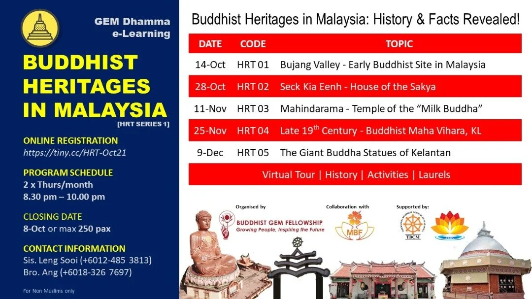 Join GEM Dhamma e-learning’s Buddhist Heritages in Malaysia course starting on Thursday 14th October to find out more about the sites selected for sharing.