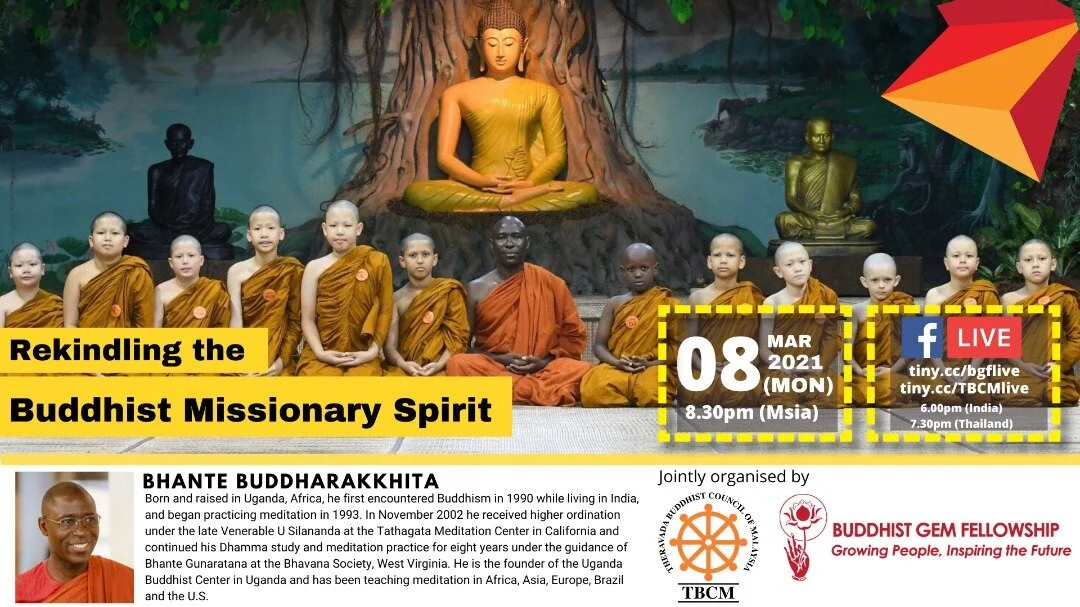 Bhante Buddharakkita was born in Uganda, Africa. He first encountered Buddhism in 1990 while studying in India. He was ordained as a Theravada Buddhist monk by the late Sayadaw U Silananda in 2002 at the Tathagata Meditation Center in San Jose, California. He then spent eight years under the guidance of Bhante Henepola Gunaratana at the Bhavana Society, West Virginia. Founder and Abbot of the Uganda Buddhist Center in Uganda, Bhante is a Visiting Professor at Union Theological Seminary in New York, USA. He is also a Spiritual Advisor to the Global Buddhist Relief in New Jersey.
